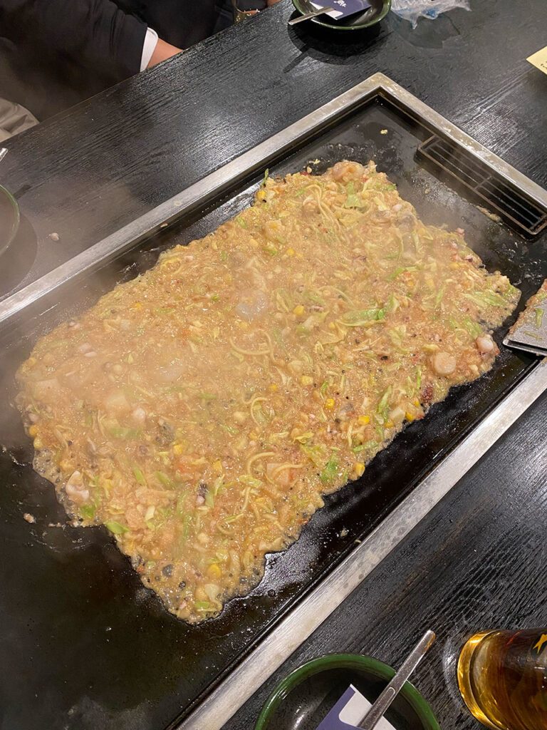 Monja Kura is a very popular restaurant that often has long lines, and it can be hard to get in. But since I went around 9 PM on a weekday, I was able to enter without waiting.