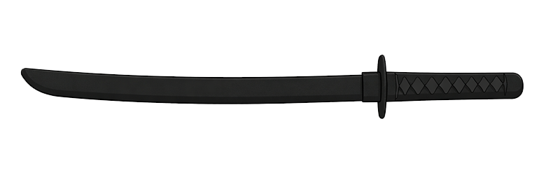 A rubber sword is a practice replica made from soft materials such as rubber or urethane. It looks similar to a Japanese sword, and the impact is greatly reduced when it makes contact, making it very safe.